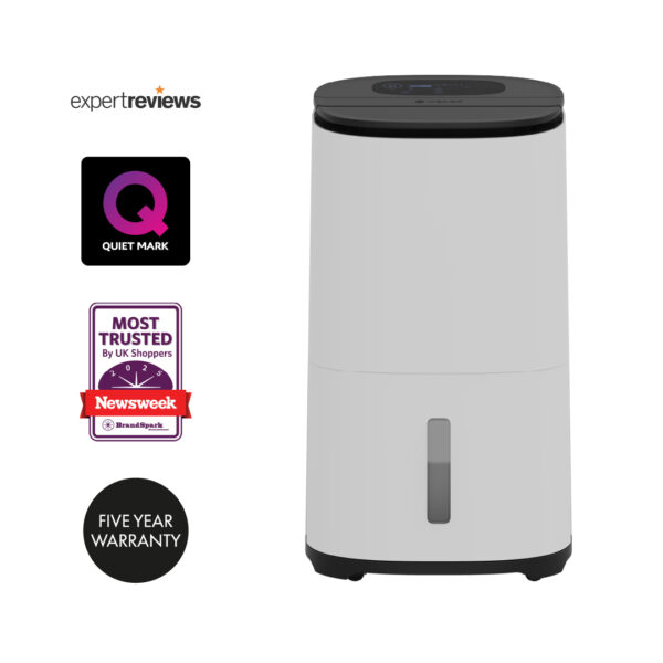 • Pantralla LCD: Unico con pantalla LCD para visión mas clara de toda la información que necesitas; humedad actual, humedad objetivo, humedad recomendada, modo actual, temporizador, indicador WET, icono de tanque lleno y emparejamiento WiFi/aplicación. Este es el primer deshumidificador de su tipo que ofrece una pantalla digital LCD de primera calidad para mostrar los datos de humedad, lo que le ofrece más control que nunca. La gran ventaja de la pantalla Chase es que puede ver, de un vistazo, la humedad de la habitación, su objetivo y su progreso hacia la humedad óptima.